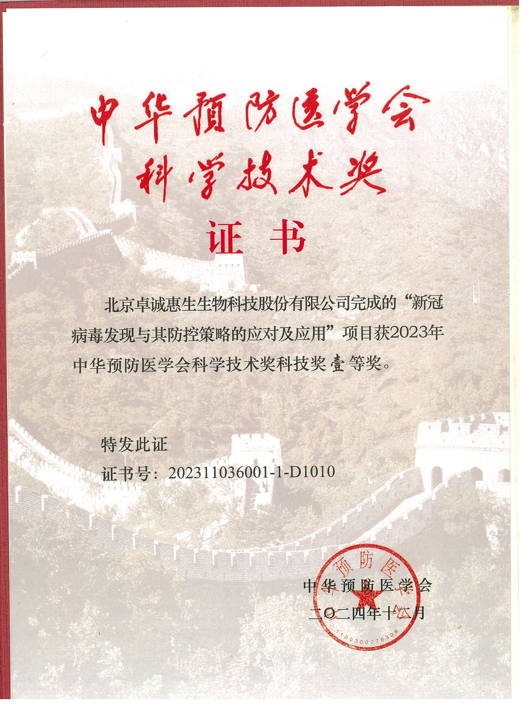 - 中華預(yù)防醫(yī)學(xué)會(huì)科學(xué)技術(shù)獎(jiǎng)一等獎(jiǎng)