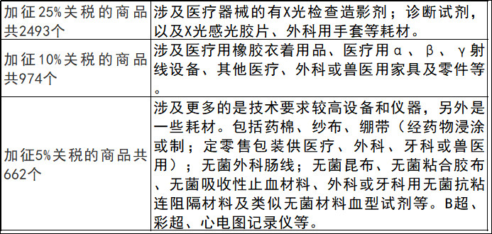 從國務院發(fā)布的公告來看,公告中提到的600億美元商品清單時發(fā)現(xiàn),涉及醫(yī)療器械的產(chǎn)品不僅有大型醫(yī)用設備儀器,同時也包括體外診斷試劑耗材!