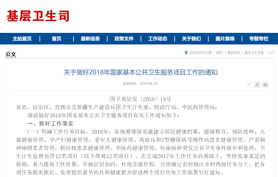關于做好2018年國家基本公共衛(wèi)生服務項目工作的通知