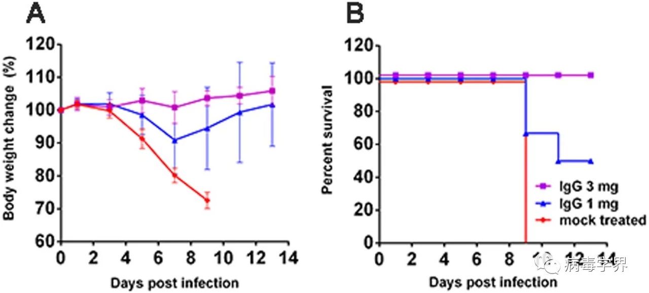 (2)研究人員使用實驗室制備的獼猴抗禽流感廣譜免疫球蛋白治療,能夠完全保護感染了致死劑量H5N6病毒的小鼠。該研究提示抗禽流感免疫球蛋白可用于救治H5N6感染者,降低死亡率。