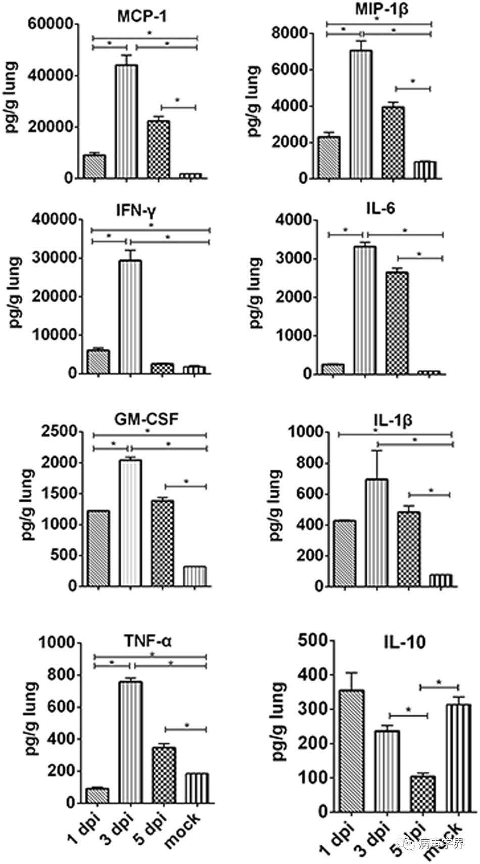 Fig. 2? Pro-inflammatory cytokines and chemokines in the lungs of H5N6/GZ14-infected mice